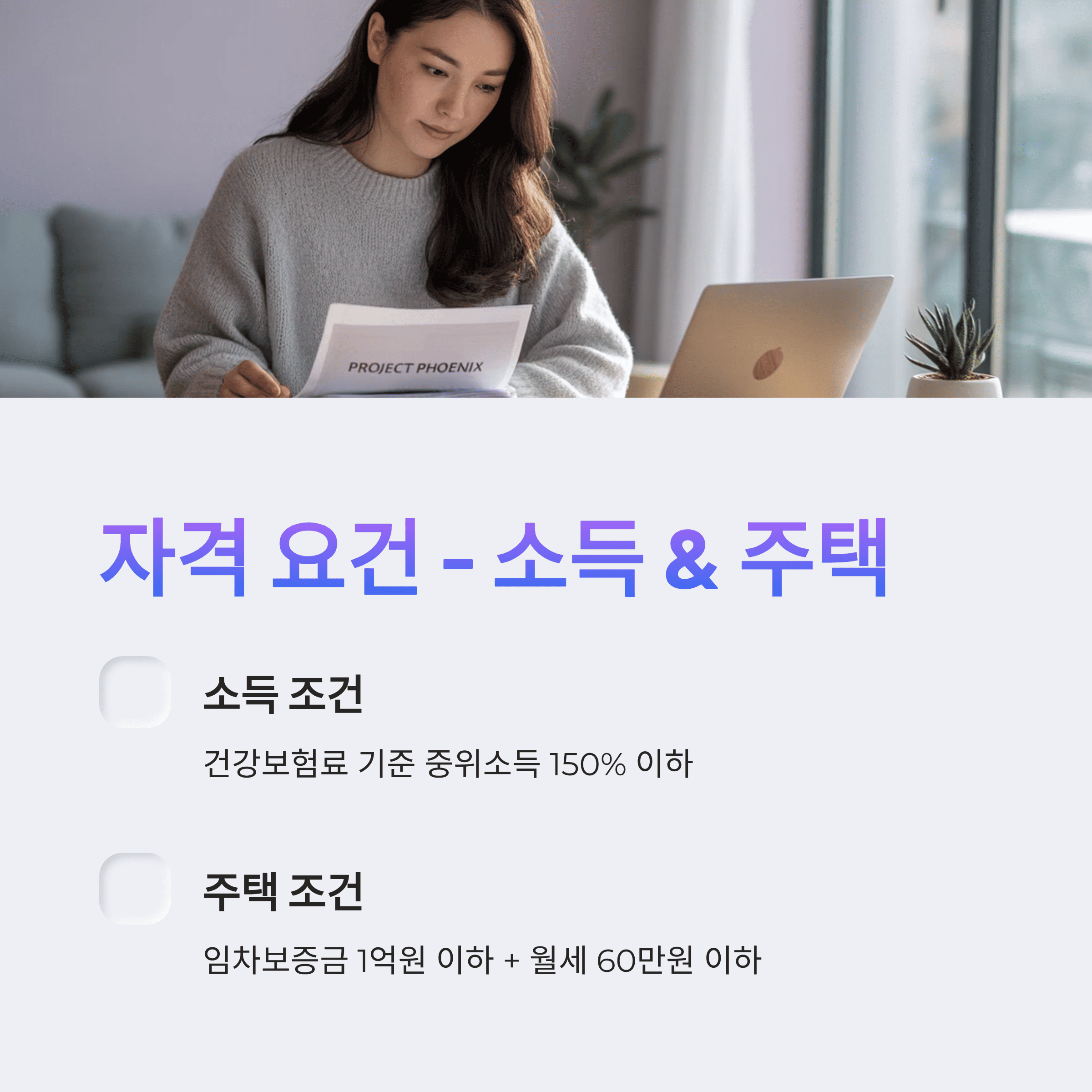 건강보험료 기준 중위소득 150% 이하여야 합니다.